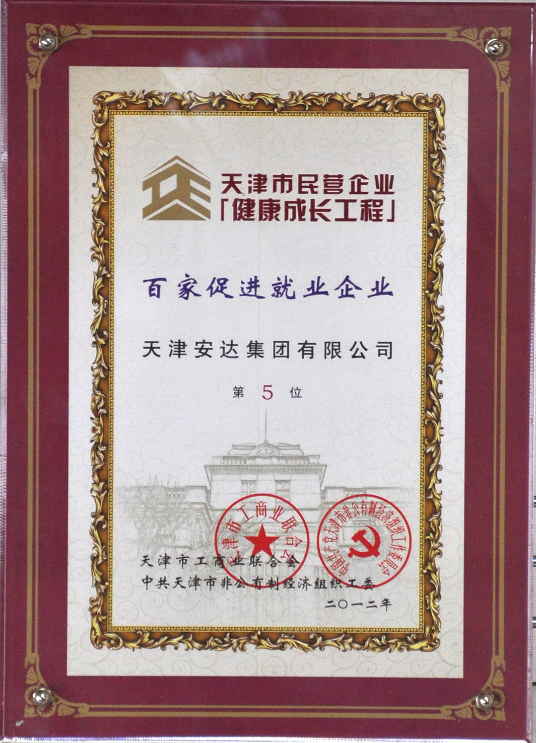 2012年天津市工商聯(lián)百家促進(jìn)就業(yè)企業(yè)第五名