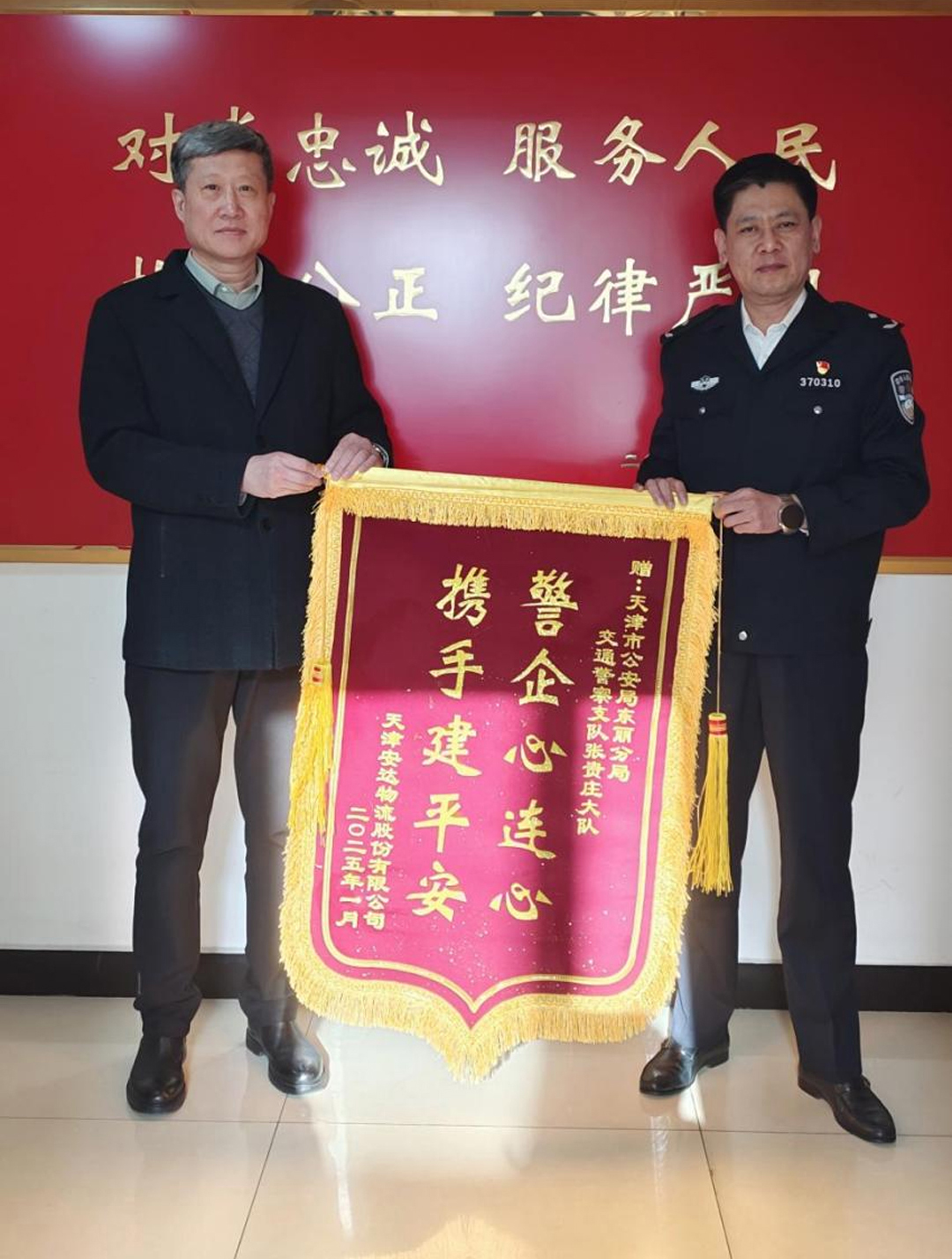 20日2025-01近日,天津安達(dá)物流股份有限公司總經(jīng)理鄭玉強(qiáng)攜副總經(jīng)理施鵬到訪天津市公安局東麗分局交通警察支隊(duì)張貴莊大隊(duì),與大隊(duì)長郭劍城進(jìn)行了一場親切且富有成效的交流。 交流過程中,鄭玉強(qiáng)首先向郭劍城大隊(duì)長全面介紹了天津安達(dá)物流股份有限公司各業(yè)務(wù)板塊的發(fā)展現(xiàn)狀,展示了安達(dá)物流在行業(yè)內(nèi)的穩(wěn)健發(fā)展態(tài)勢,特別闡...[查看詳情]