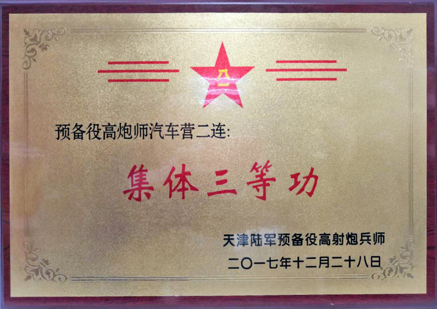 31日2019-01安達集團預(yù)備役高炮師汽車營二連,堅決貫徹習主席新時代強軍思想,在人員緊張、任務(wù)強度重的情況下,積極擔當、主動作為、攻堅克難、狠抓落實、銳意進取,出色圓滿的完成了年度上級下達的各項任務(wù)。近日,被中國人民解放軍天津陸軍預(yù)備役高射炮兵師記“集體三等功”一次。同時,為表彰預(yù)備役高炮師汽車營二連日常...[查看詳情]