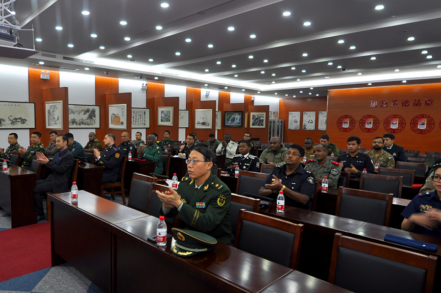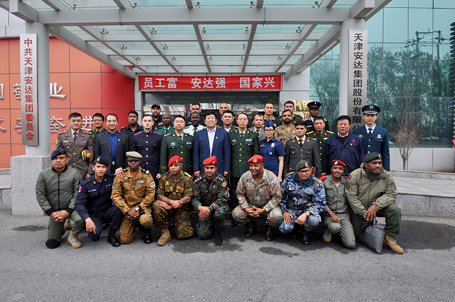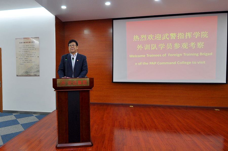 學(xué)員們首先來到道德講堂,觀看了企業(yè)宣傳片,隨后崔洪金發(fā)表了熱情洋溢的講話,崔洪金首先向大家介紹了安達(dá)集團(tuán)的發(fā)展歷程及“四大板塊”的經(jīng)營成果,并就安達(dá)集團(tuán)多年來心系國防,擁軍備戰(zhàn)的軍人情結(jié)有機(jī)的融入企業(yè)文化之中作出精彩詮釋,他指出:“習(xí)近平總書記倡導(dǎo)的‘一帶一路’偉大戰(zhàn)略構(gòu)想,是為了更好地構(gòu)建人類命運(yùn)共同體,實現(xiàn)全世界的共同發(fā)展和人民的共同富裕。安達(dá)集團(tuán)的產(chǎn)品已經(jīng)遠(yuǎn)銷到西亞、非洲、澳洲、南美洲等多個國家和地區(qū),我們將借助‘一帶一路’,走向更多的國家的地區(qū),與更多的國家和地區(qū)建立商業(yè)往來,以更優(yōu)的產(chǎn)品服務(wù)更多的用戶、造福更多的人民。”崔洪金說:“我是一名退役軍人,安達(dá)集團(tuán)更是先后安置過500余名退役軍人在這里就業(yè),我們與軍人有著不解之緣。我愿意與你們所有人都成為朋友,并通過你們與你們國家的人民成為朋友。蘇格蘭有一首非常有名的詩歌,后來被譜為歌曲,在全世界廣為流傳,逐漸成為膾炙人口的名曲,翻譯成中文名叫《友誼地久天長》,愿安達(dá)與你們友誼地久天長,愿中國與你們的國家友誼地久天長!”武警指揮學(xué)院的領(lǐng)導(dǎo)及各國外訓(xùn)軍官學(xué)員對崔洪金的講話報以熱烈掌聲,武警指揮學(xué)院領(lǐng)導(dǎo)胡金紅代表全體外訓(xùn)學(xué)員向崔洪金董事長贈送紀(jì)念徽章以示敬意。
