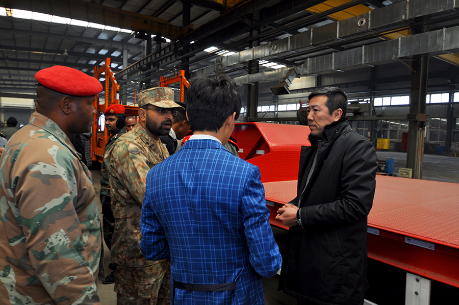 武警指揮學(xué)院領(lǐng)導(dǎo)及外訓(xùn)軍官學(xué)員隨后驅(qū)車來到安達(dá)集團(tuán)旗下安駿掛車制造有限公司,安達(dá)集團(tuán)副總經(jīng)理、安駿掛車制造有限公司總經(jīng)理徐鵬親自陪同大家參觀了生產(chǎn)及研發(fā)的各個環(huán)節(jié),并就技術(shù)工藝等問題進(jìn)行了詳細(xì)的講解和回答,活動圓滿結(jié)束。