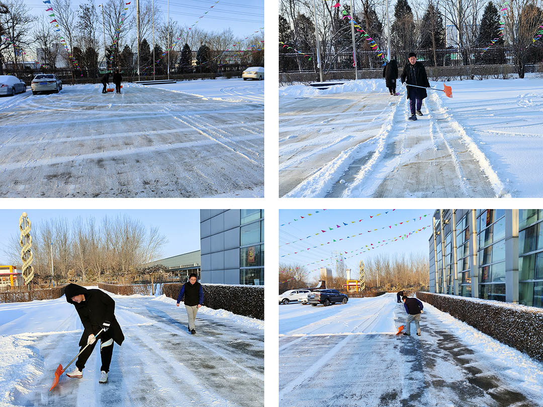 2月13日,虎年首場降雪如約而至,洋洋灑灑的雪花很快將安達(dá)集團(tuán)各廠院路面覆蓋。集團(tuán)各子公司以雪為令,立即行動起來。各單位員工在相關(guān)領(lǐng)導(dǎo)帶領(lǐng)下,手拿鐵鍬、掃帚、簸箕等工具,對辦公樓門口和廠區(qū)內(nèi)重要點位、路面進(jìn)行積雪大清掃。積雪的清除,為員工和車輛出入提供了安全保障。寒風(fēng)襲襲,盡管大家凍得手腳冰涼,但全體員工齊心協(xié)作,相互配合,一派熱火朝天的除雪場景,甚是鼓舞人心。