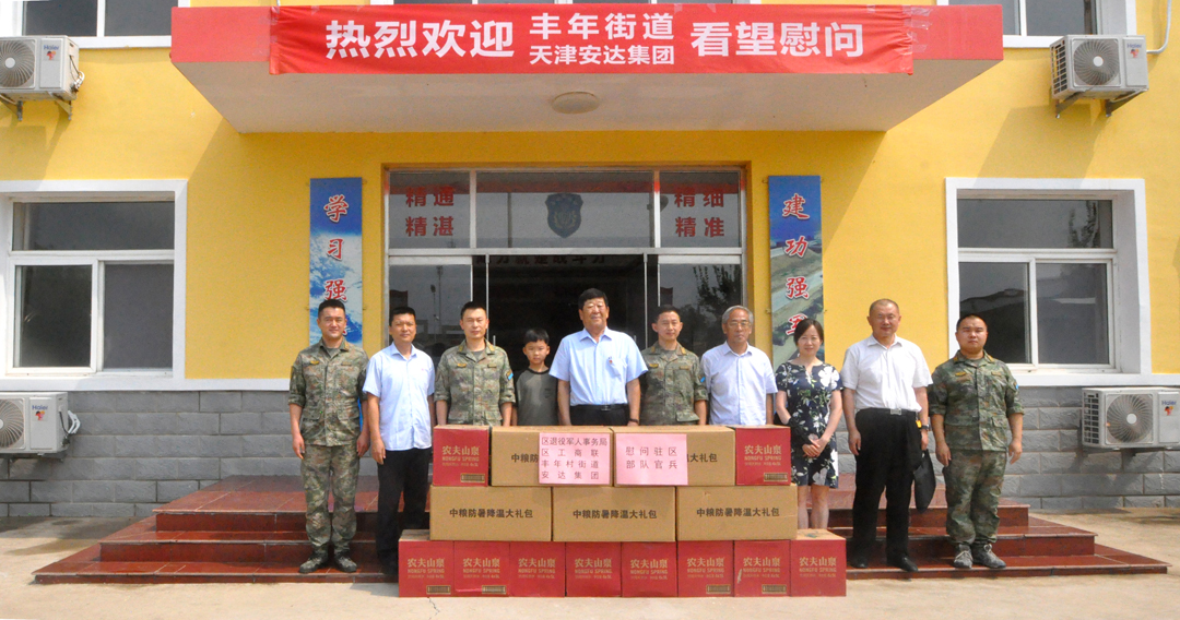 為慶祝中國人民解放軍建軍96周年,進(jìn)一步深化軍地軍民共建關(guān)系,在八一建軍節(jié)來臨之際,安達(dá)集團(tuán)聯(lián)合區(qū)退役軍人事務(wù)局、區(qū)工商聯(lián)、豐年街道開展走訪慰問駐區(qū)部隊(duì)活動(dòng),為部隊(duì)廣大官兵送去節(jié)日的祝賀和誠摯的慰問。