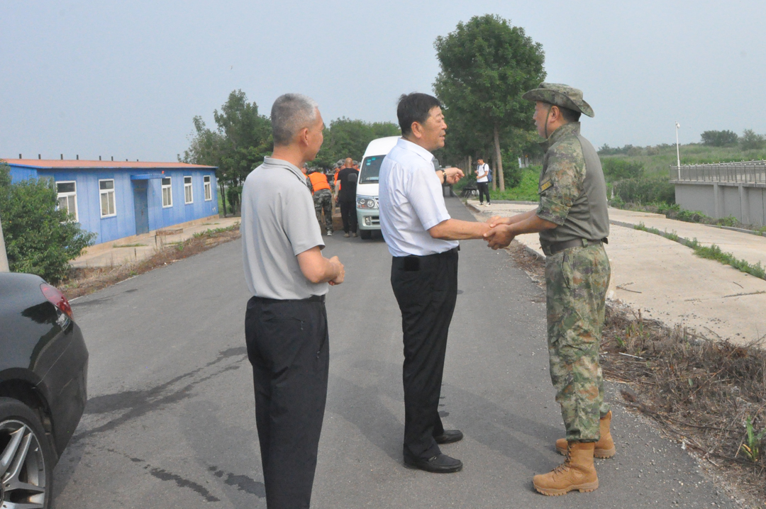 8月8日,區(qū)委常委、武裝部部長劉躍民,區(qū)退役軍人事務(wù)局黨組書記、局長 曹硯海,全國“最美擁軍人物”、安達(dá)集團(tuán)黨委書記、董事長崔洪金一起到永定新河?xùn)|麗段,慰問抗洪搶險一線民兵。