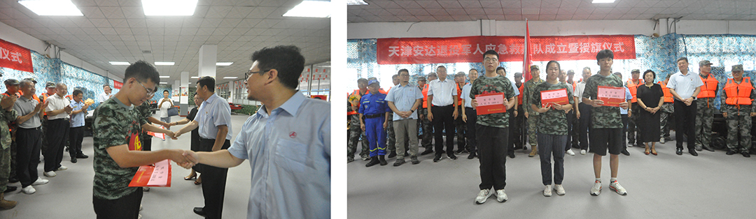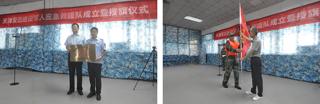 在主持人馬萍向崔洪金董事長鏗鏘有力的請示后,活動正式開始。全體人員齊唱國歌,伴隨著嘹亮的歌聲,五星紅旗冉冉升起。隨后全體人員移步二樓退役軍人之家,在全體領(lǐng)導(dǎo)、安達(dá)職工及職工子弟的共同見證下,全國“最美擁軍人物”崔洪金宣布“天津安達(dá)退役軍人應(yīng)急救援隊(duì)”成立并帶領(lǐng)全體救援隊(duì)隊(duì)員宣誓。