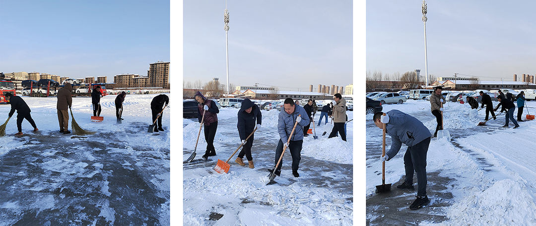 天氣寒冷絲毫不減大家的勞動熱情,所有人員不退縮、不畏難,大家擰成一股繩,一起全力勞動。聽,這邊有人說“何姐,我來吧”,“我來我來,我是黨員又是支部書記我?guī)ь^”。無論男女,大家齊心協(xié)力,個個想著沖鋒在前,打掃起來也是井然有序、配合默契,忙碌的身影構(gòu)成一道靚麗的風景線,一會兒工夫,就清理出了一大片路面,為公司職工的出行提供了極大方便。雖然室外溫度低,路面積雪清理難度大,但大家勞動的熱情和團結(jié)的力量讓寒冷的天氣變得格外溫暖。