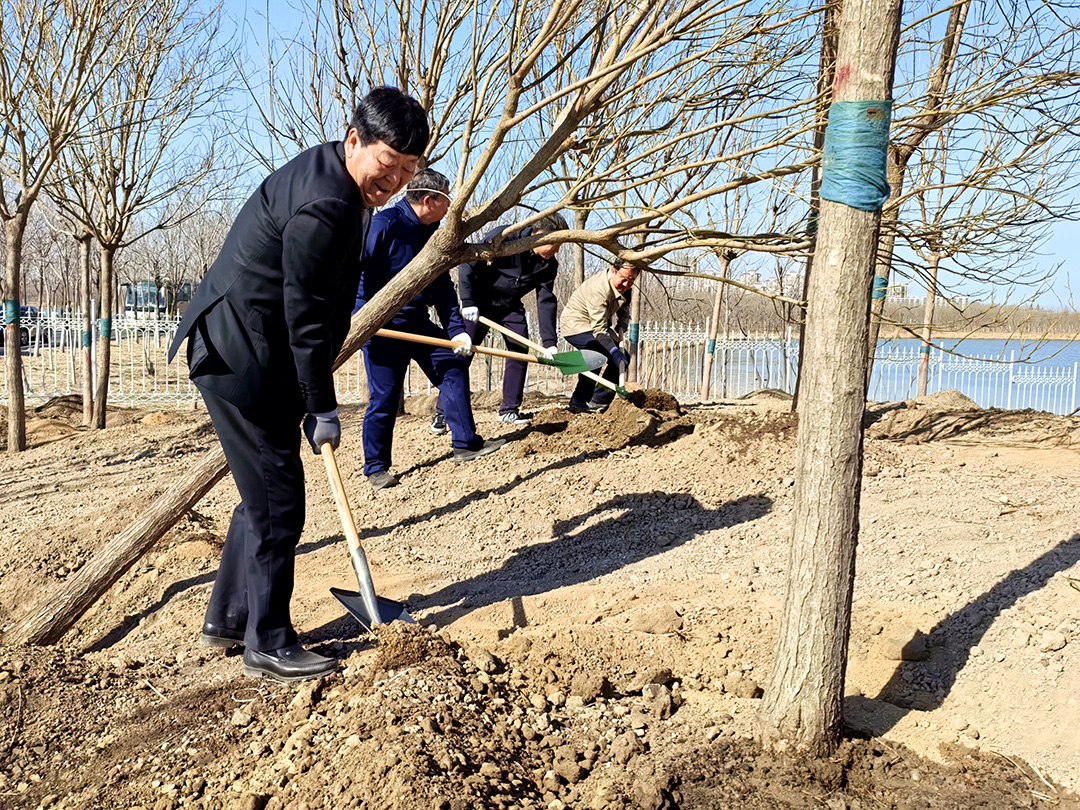 東湖風景區(qū)位于綠色生態(tài)屏障區(qū)內(nèi),風景區(qū)內(nèi)湖面蕩漾,林水相依,草長鶯飛,成為市民游憩休閑、親近自然的好去處。趙飛、賈堤、李春、李大勇、劉偉、崔洪金等來到這里,拿起鐵鍬來到植樹區(qū)域,揮鍬鏟土、培土圍堰、提桶澆水,種下北京欒、旱柳等苗木。新種下的樹木迎風挺立,一排排矗立在岸邊,枝條在春風的吹拂下輕輕搖曳,充滿勃勃生機。