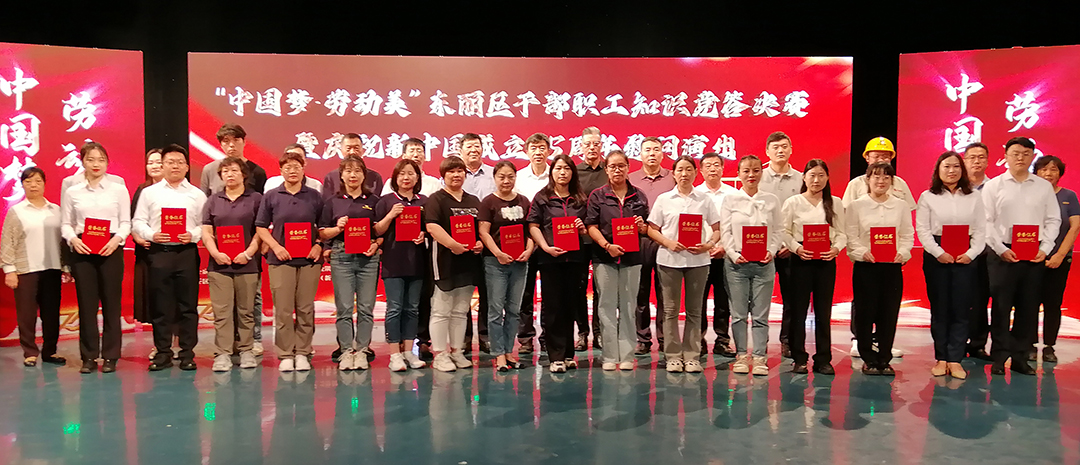活動(dòng)以歌伴舞《時(shí)代號(hào)子》開(kāi)場(chǎng),唱出了東麗職工的豪情和壯志,唱響勞動(dòng)最偉大、勞動(dòng)最光榮。隨后,天津金隅混凝土有限公司工會(huì)等8支代表隊(duì),進(jìn)行黨的創(chuàng)新理論知識(shí)競(jìng)答,最后在頒獎(jiǎng)環(huán)節(jié),崔洪金為獲得銅獎(jiǎng)選手頒發(fā)證書(shū),并合影留念。