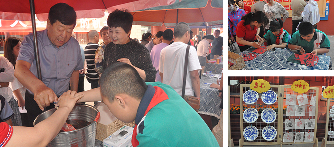 活動(dòng)伊始,在尚俊歆校長(zhǎng)的陪同下,崔洪金董事長(zhǎng)緩步走進(jìn)孩子們的手工作品和畫(huà)作展區(qū)。展區(qū)內(nèi),斑斕的色彩躍然紙上 —— 用稚嫩筆觸描繪的盤(pán)畫(huà)和拓印畫(huà)迎著陽(yáng)光綻放,紅色剪紙畫(huà)作栩栩如生,每一件作品都凝結(jié)著孩子們對(duì)世界的獨(dú)特感知與熾熱向往。崔洪金董事長(zhǎng)駐足良久,認(rèn)真傾聽(tīng)每幅畫(huà)、每件手工藝品背后的故事,眼中滿是贊許與心疼。