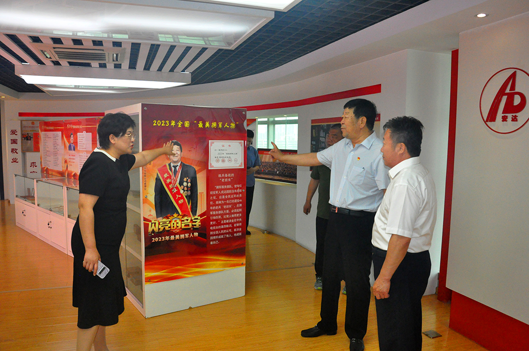 隨后,眾人移步至集團(tuán)的文化展廳。展示著安達(dá)集團(tuán)多年來的發(fā)展歷程、所獲榮譽(yù)以及履行社會(huì)責(zé)任的點(diǎn)點(diǎn)滴滴。陸福寬會(huì)長(zhǎng)對(duì)安達(dá)集團(tuán)在擁軍優(yōu)屬方面做出的突出貢獻(xiàn)給予了高度評(píng)價(jià):“安達(dá)集團(tuán)不僅在企業(yè)經(jīng)營(yíng)上成績(jī)斐然,更是在退役軍人就業(yè)創(chuàng)業(yè)、關(guān)愛幫扶等工作中發(fā)揮了示范引領(lǐng)作用,為全社會(huì)樹立了榜樣。”