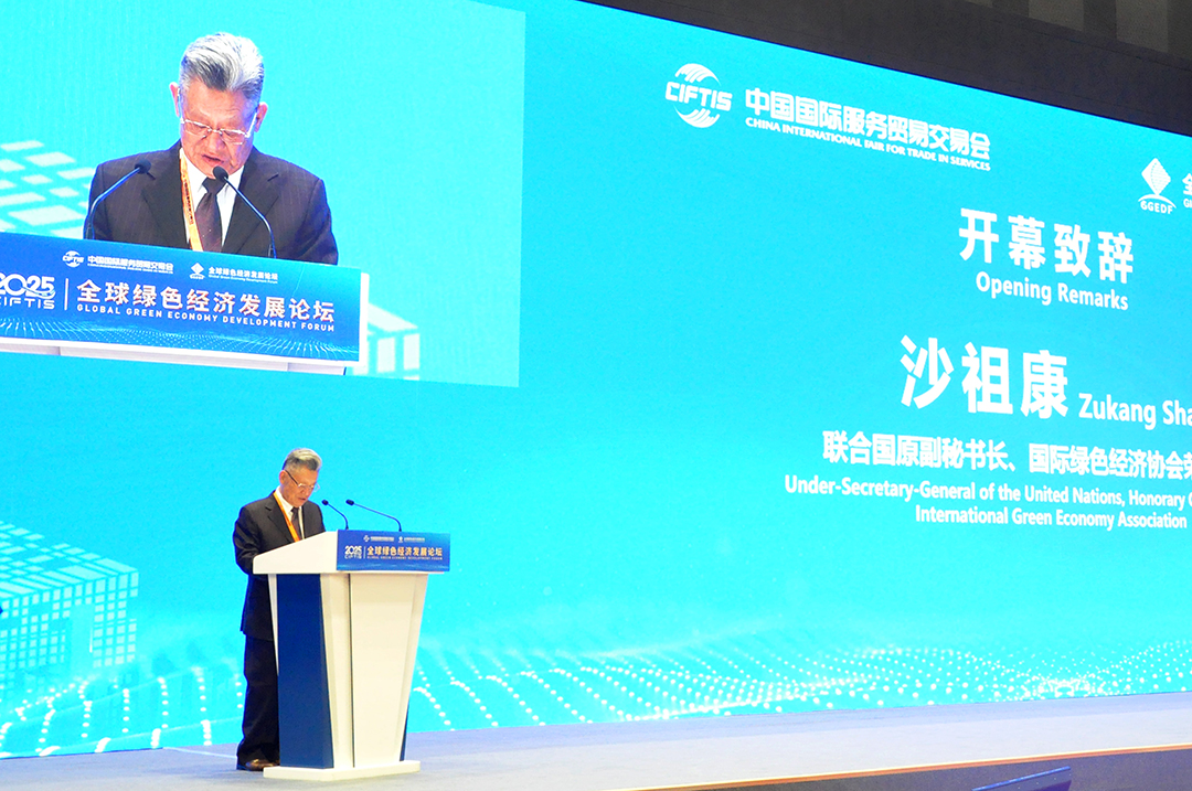 本次論壇以 “共筑 SDGs— 綠色經(jīng)濟(jì)創(chuàng)新與全球合作” 為主題,匯聚了聯(lián)合國(guó)及歐盟委員會(huì)官員、多國(guó)駐華使節(jié)、中央部委專家、地方政府代表、中外專家學(xué)者和綠色低碳行業(yè)企業(yè)代表等 300 余人。聯(lián)合國(guó)原副秘書(shū)長(zhǎng)、國(guó)際綠色經(jīng)濟(jì)協(xié)會(huì)榮譽(yù)主席沙祖康為開(kāi)幕式致辭,強(qiáng)調(diào)了開(kāi)展綠色經(jīng)濟(jì)創(chuàng)新與全球合作對(duì)于推動(dòng)實(shí)現(xiàn) SDGs 的重要性。